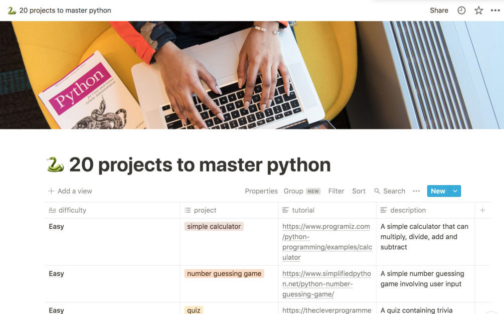 You will get a notion template with 20 python projects